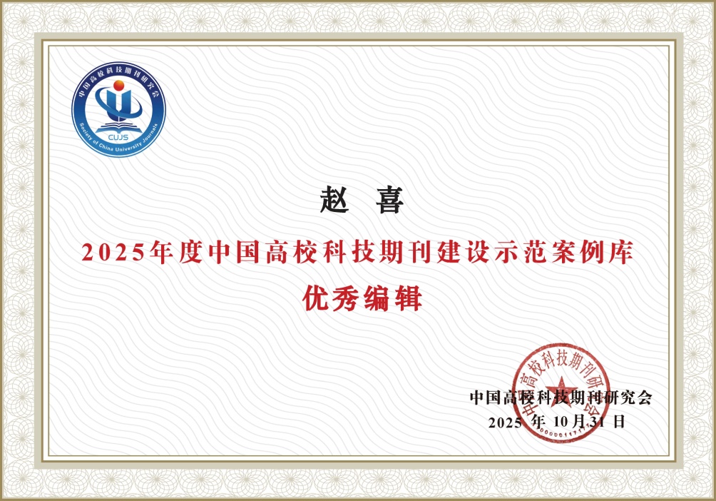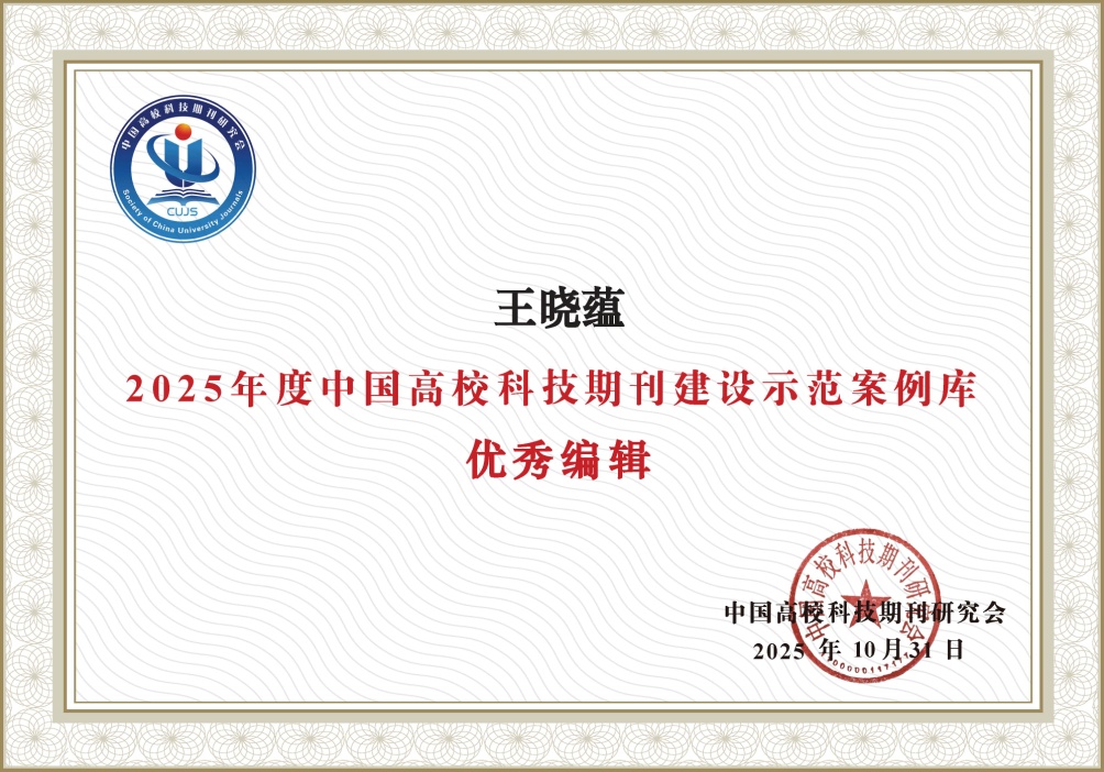 2025年度中国高校科技期刊建设示范案例库·编辑团队及编辑个人入库案例结果公布,王晓蕴和赵喜荣获2025年度中国高校科技期刊建设示范案例库·优秀编辑。